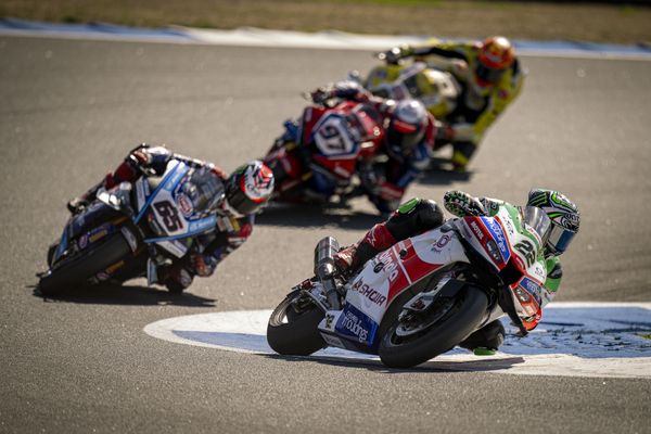 Alex Lowes and Axel Bassani finished fifth and 11th respectively in a stopped and restarted WorldSBK Race One at Estoril. The planned 21-lap race was reduced to 20, after the first attempted start was red-flagged because of a Turn One crash.